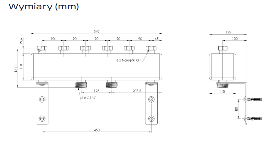 Rozstaw od strony instalacji (mm) 90