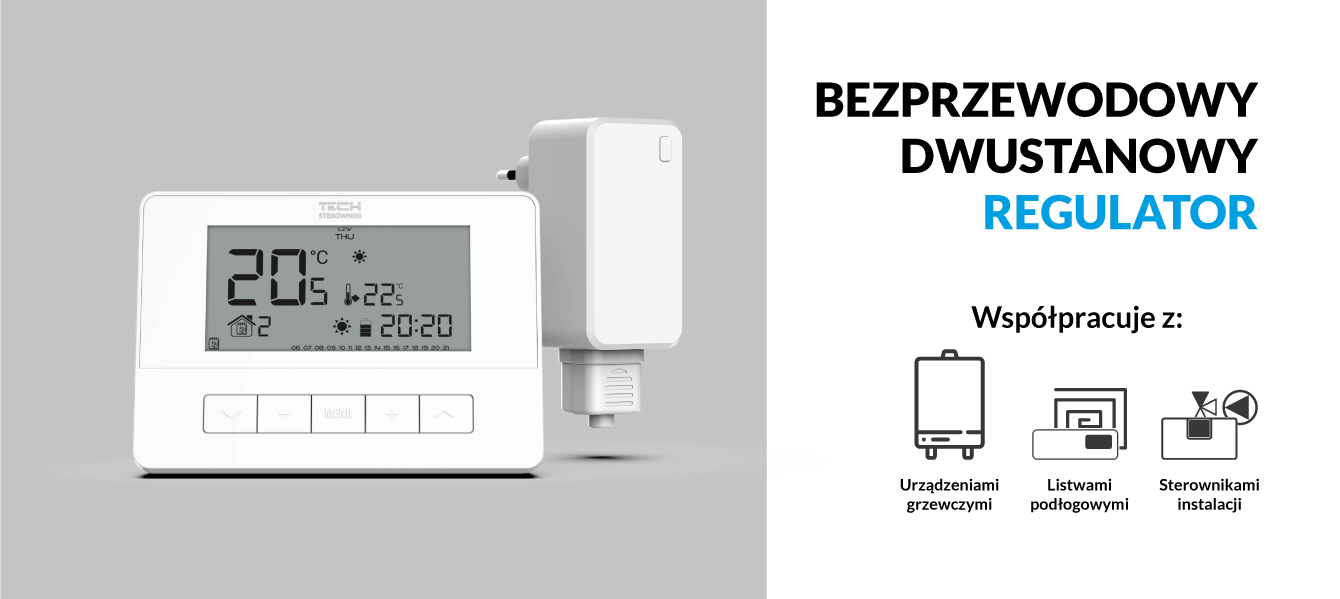 TECH BEZPRZEWODOWY REGULATOR POKOJOWY DWUSTANOWY NATYNKOWY BIAŁY T-4.2