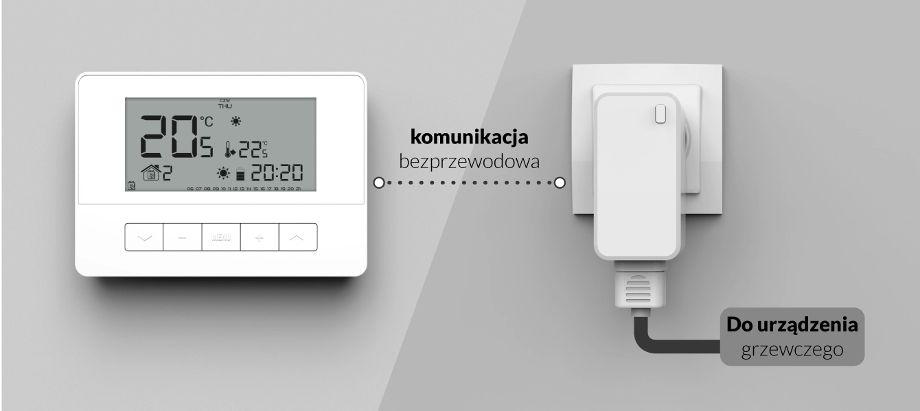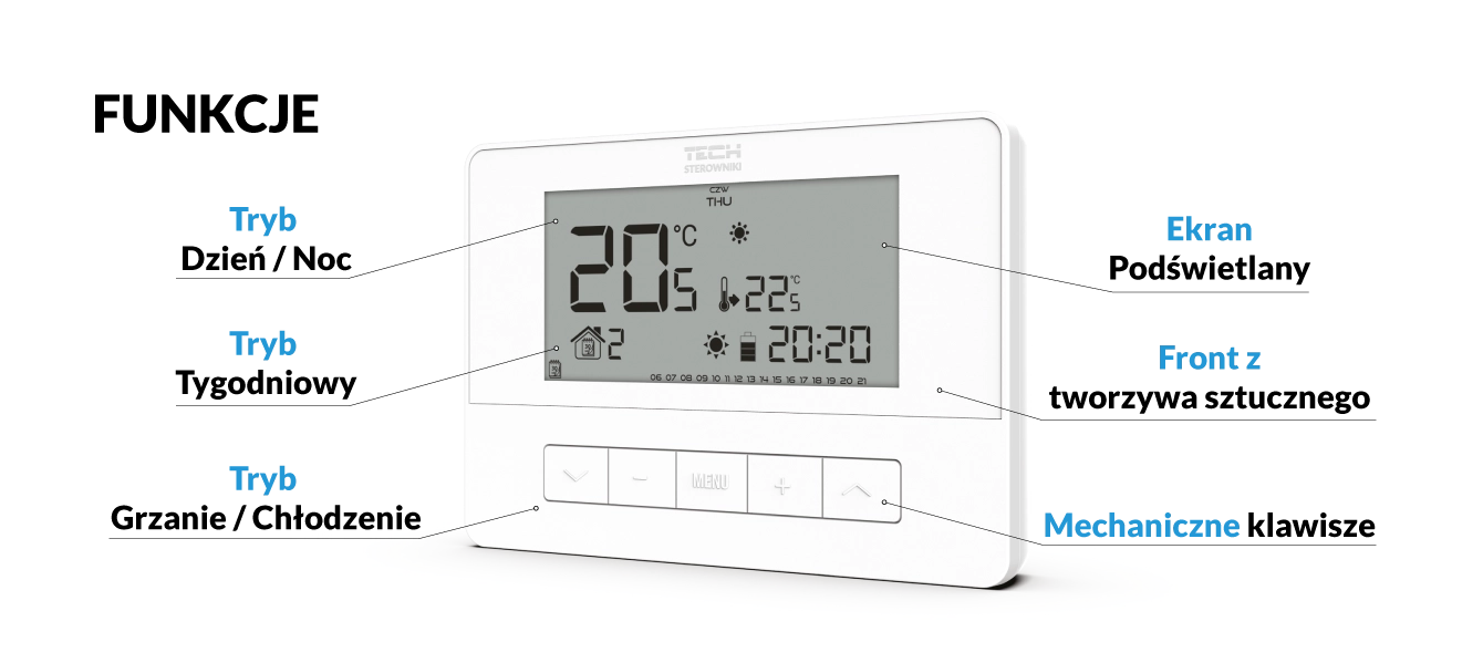 - sterowanie temperaturą pokojową +/- z dokładnością 0,1°C