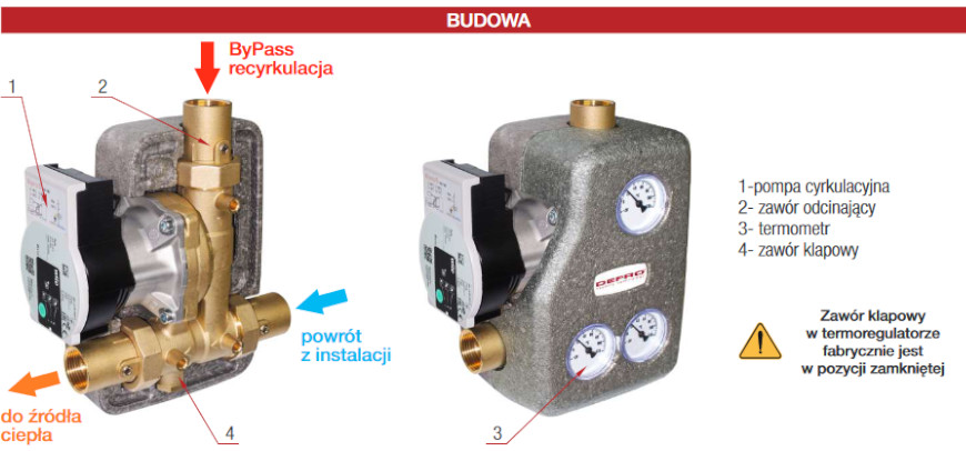 - Termoregulator DEFRO włączony do systemu grzewczego zwiększa żywotność kotła, podnosząc temperaturę na powrocie z instalacji, znacznie ogranicza korozję niskotemperaturową kotła.