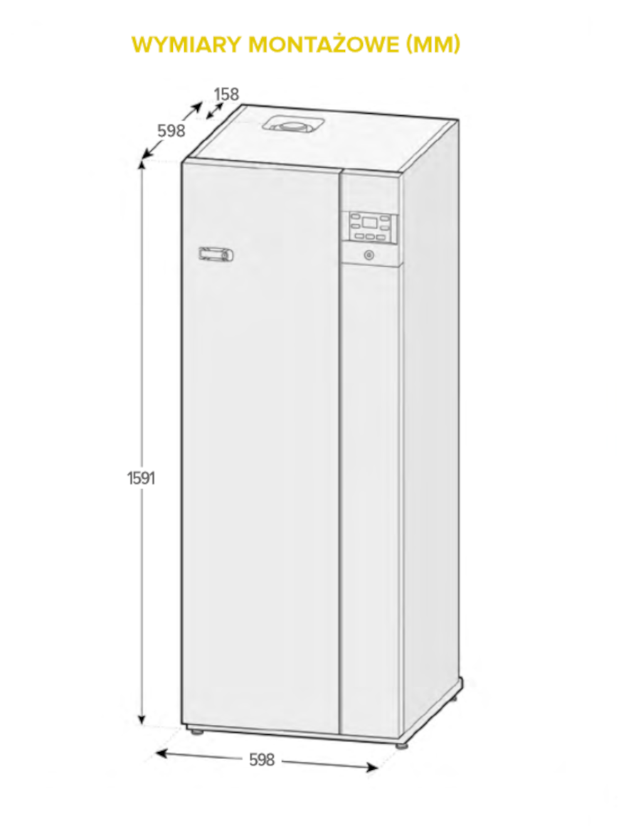 | Wymiary kotła wys x szer x głęb (mm) | 596 x 1595 x 658 cm |