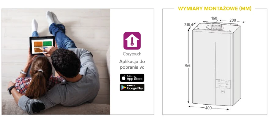 Kocioł Ilea umożliwia zdalne sterowanie poprzez aplikację Cozytouch. Dzięki temu możesz monitorować i kontrolować pracę kotła z dowolnego miejsca, zapewniając wygodę i pełną kontrolę nad systemem grzewczym.