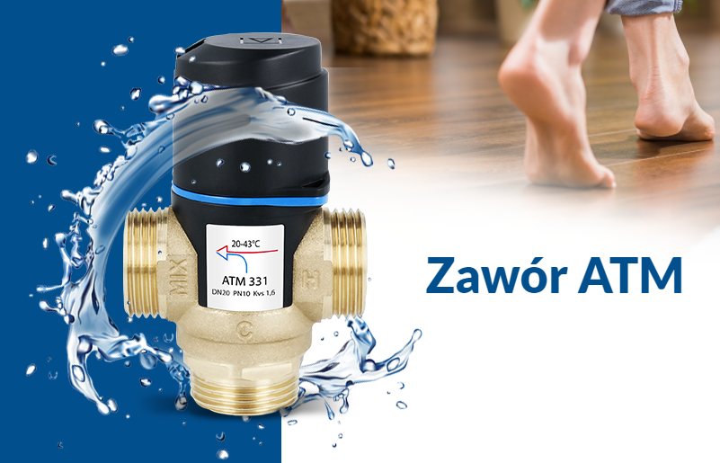 Zawory termostatyczne mieszające ATM powinny być stosowane wszędzie tam, gdzie niezbędna jest ochrona przed poparzeniem oraz wskazana jest szybka reakcja na zmiany temperatury i ciśnienia wody. Zawory ATM umożliwiają bezpieczne przegrzewanie wody w zasobnikach c.w.u. w celu ochrony przed bakteriami Legionelli, bez narażania użytkowników na poparzenie. Funkcja "bez oparzeń" powoduje zablokowanie dopływu wody ciepłej w wypadku awarii dopływu wody zimnej. W instalacjach grzewczych, np. ogrzewania podłogowego zawory ATM mogą zastępować rozbudowane i kosztowne układy regulacji. Pod plastikową pokrywką, chroniącą przed przypadkową zmianą nastawy, znajduje się pokrętło do ustawienia temperatury wody zmieszanej. Zawory termostatyczne ATM podczas pracy nie wymagają czynności konserwacyjnych i mogą być montowane w dowolnej pozycji. Przeznaczone są do pracy z czystą wodą lub wodą zawierającą maksymalnie 50% glikolu. Wykonane są z mosiądzu DZR.