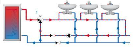 Jeżeli natomiast, w kilku punktach czerpalnych wymagane są różne temperatury, np. pod prysznicem, umywalkach z czujnikami lub przyciskiem, wówczas przed każdym z punktów lub przed każdą strefą o tej samej temperaturze wody, montujemy termostatyczny zawór mieszający ATM.