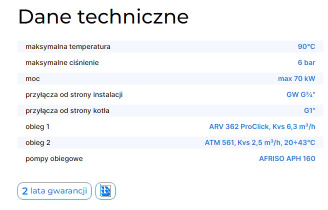 | Obieg 2 | zawór mieszający z regulatorem stałotemperaturowym ACT 443 ProClick |