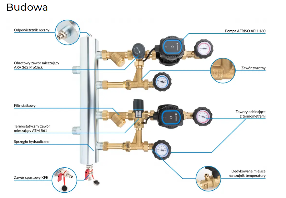 AFRISO BPS 961 ZESTAW MIESZAJĄCY ZE SPRZĘGŁEM HYDRAULICZNYM CZŁON Z ZAWOREM OBROTOWYM ARV I ZAWOREM MIESZAJĄCYM ATM, POMPY AFRISO APH160 - 90 961 20