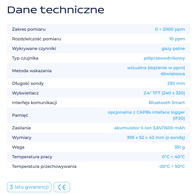 Wyposażony w czujnik dyfuzyjny i elastyczną sondę do szybkiego i niezawodnego wykrywania gazów łatwopalnych w podanym zakresie pomiarowym.