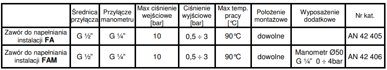 FAM - zawór do automatycznego napełniania instalacji grzewczej z ogranicznikiem ciśnienia, zaworem zwrotnym i odcinającym oraz manometrem
