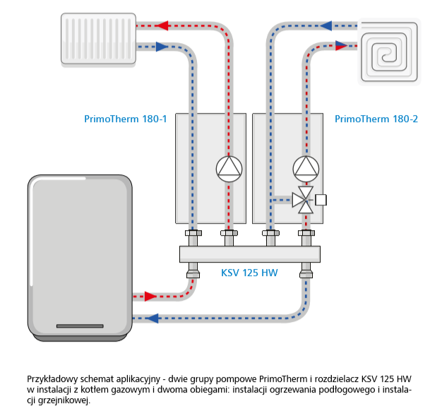 Grupa pompowa PrimoTherm K 180-2 to kompaktowy, gotowy zespół urządzeń i armatury, przeznaczony do połączenia źródła ciepła z instalacją grzewczą. W skład grupy wchodzą: