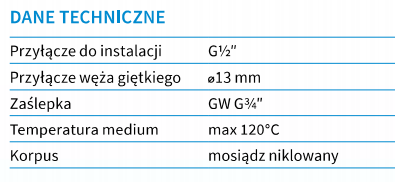 | Rozmiar przyłącza od strony instalacji (cal) | ½" GZ |