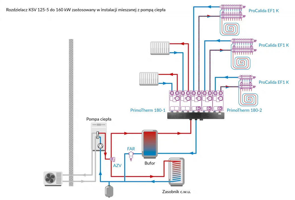 Rozdzielacz KSV 125-5, 160 kW, dla 5 obiegów pompowych