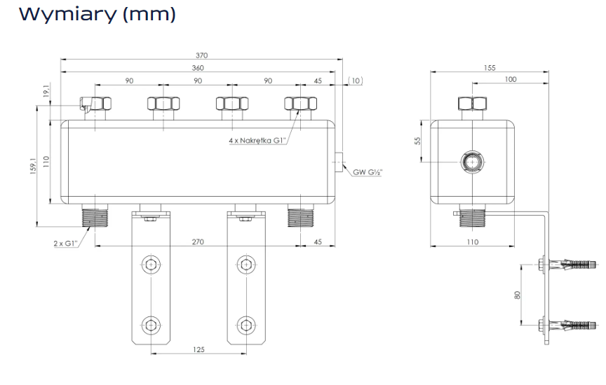 Przyłącza od strony instalacji 1" GW