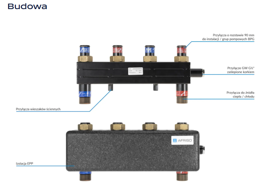 AFRISO KSV 90-2 HW ROZDZIELACZ HYDRAULICZNY 2 - OBIEGOWY ZE ZINTEGROWANYM SPRZĘGŁEM 90 232 00 (rozstaw przyłączy 90mm, do grup pompowych BPG)