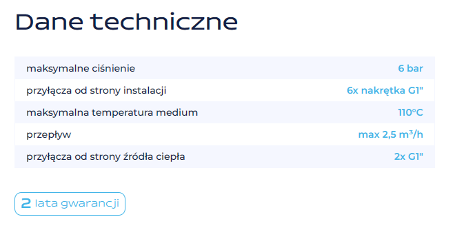 | Przyłącza od strony źródła ciepła | 1" GZ |