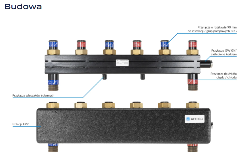 AFRISO KSV 90-3 HW ROZDZIELACZ HYDRAULICZNY 3 - OBIEGOWY ZE ZINTEGROWANYM SPRZĘGŁEM 90 233 00 (rozstaw przyłączy 90mm, do grup pompowych BPG)