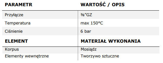 - przyłącze: ⅜'' GZ