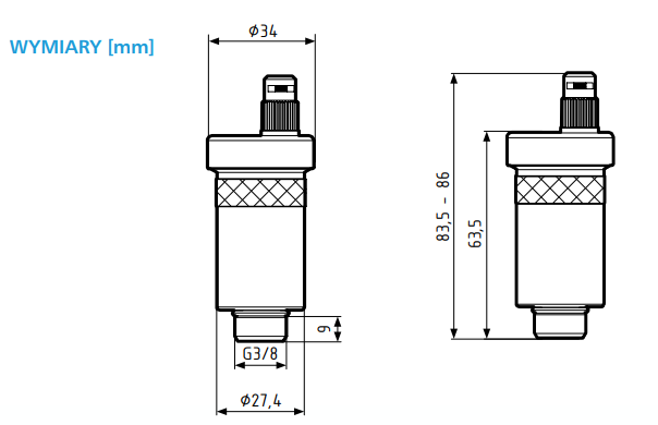 | Rodzaj odpowietrznika | pionowy |