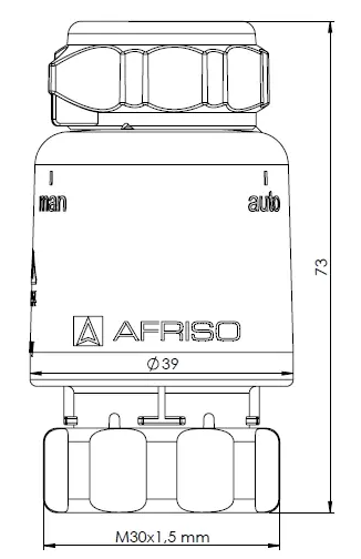 Siłownik termoelektryczny TSA-02 FO, GW M30x1,5 mm, 230 V AC, NC, funkcja sterowania ręcznego