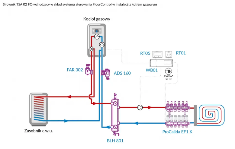 Połączony z listwą systemu sterowania instalacją płaszczyznową (np. FloorControl, CosiTherm) umożliwia ustawienie różnych temperatur w każdej ze stref.
