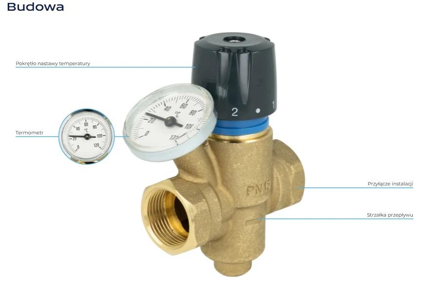 • Umożliwia nastawę temperatury wody w pionie / gałęzi w przedziale 40÷65°C.