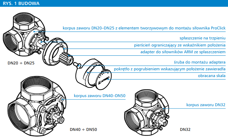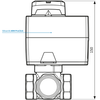 - Wyposażony w siłownik elektryczny ARM ProClick, który połączony z odpowiednim regulatorem zautomatyzuje pracę zaworu.