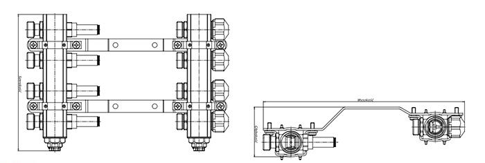 Rozdzielacz mosiężny 1" z wkładkami termostatycznymi i przepływomierzami, 10 obwodów.