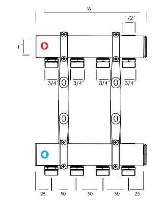 Rozdzielacz stalowy 1" z nyplami 1/2"x 3/4", 11 obwodów.