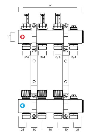ALTECH ROZDZIELACZ STALOWY Z PRZEPŁYWOMIERZAMI 1 CAL Z WKŁADKAMI ZAWORÓW TERMOSTATYCZNYCH 10 OBWODÓW