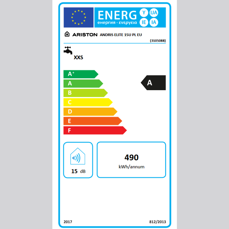 ARISTON ANDRIS ELITE 15U ELEKTRYCZNY POJEMNOŚCIOWY PODUMYWALKOWY PODGRZEWACZ WODY (BOJLER) 15 L 2,0 KW 3105088