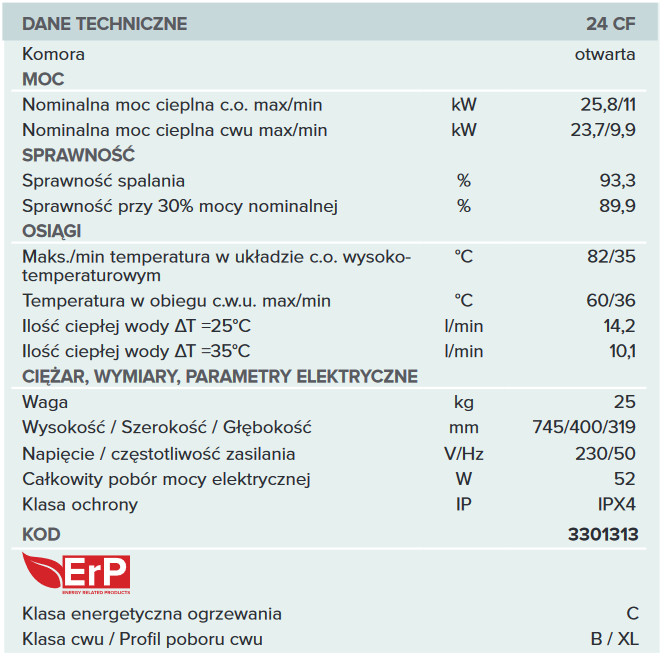 ARISTON CLAS X 24 CF EU DWUFUNKCYJNY KOCIOŁ GAZOWY Z OTWARTĄ KOMORĄ SPALANIA 11-25,8 KW 3301313