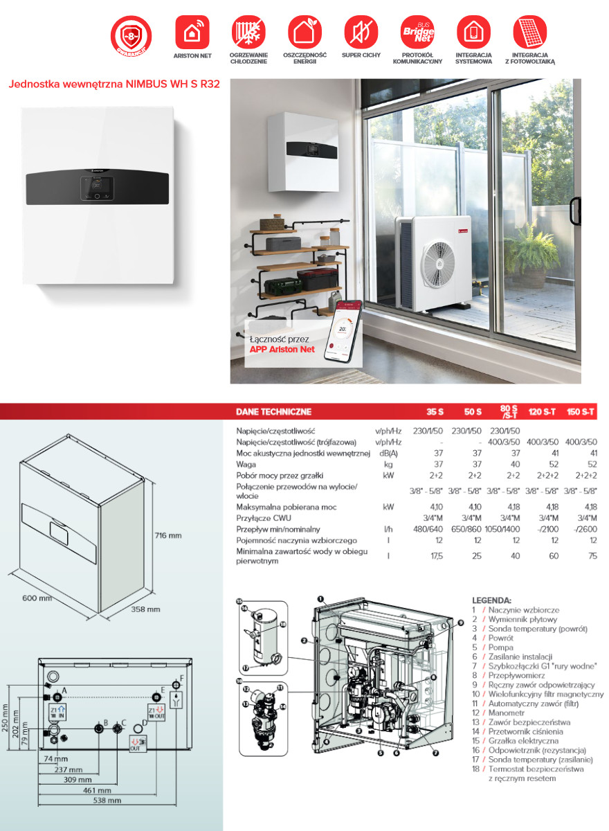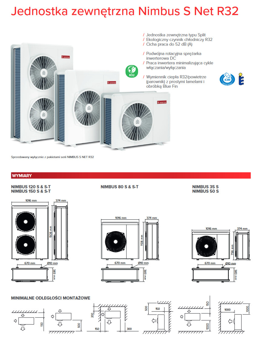 ARISTON NIMBUS PLUS 150 S-T NET - INWERTEROWA POMPA CIEPŁA TYPU SPLIT DO GRZANIA/CHŁODZENIA 15 KW 400 V