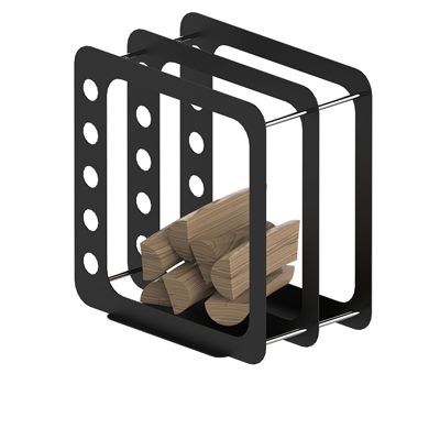 Stojak na drewno K3 zaprojektowany został z w nowoczesnej stylistyce. Wykonany ze stali lakierowanej proszkowo na kolor czarny matowy. Stojak jest stabilny i mieści sporą ilość drewna, zaś jego ażurowa konstrukcja zapewnia właściwą wentylacją drewna. Umieszczony obok kominka pozwala przechowywać drewno w sposób uporządkowany i zapewniający łatwy dostęp. Stojak P3 z drewnem stanowi oryginalny element wystroju nie tylko podczas sezonu grzewczego.