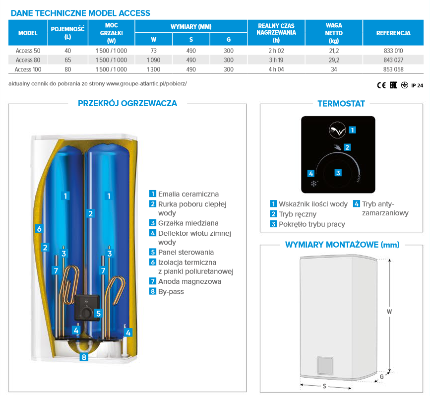 ATLANTIC OGRZEWACZ WODY ACCESS 50 40L 2,5KW 831275