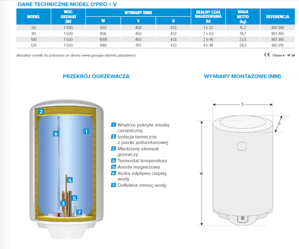 ATLANTIC OGRZEWACZ WODY O'PRO + V 100 100L MODEL WISZĄCY PIONOWO 861365
