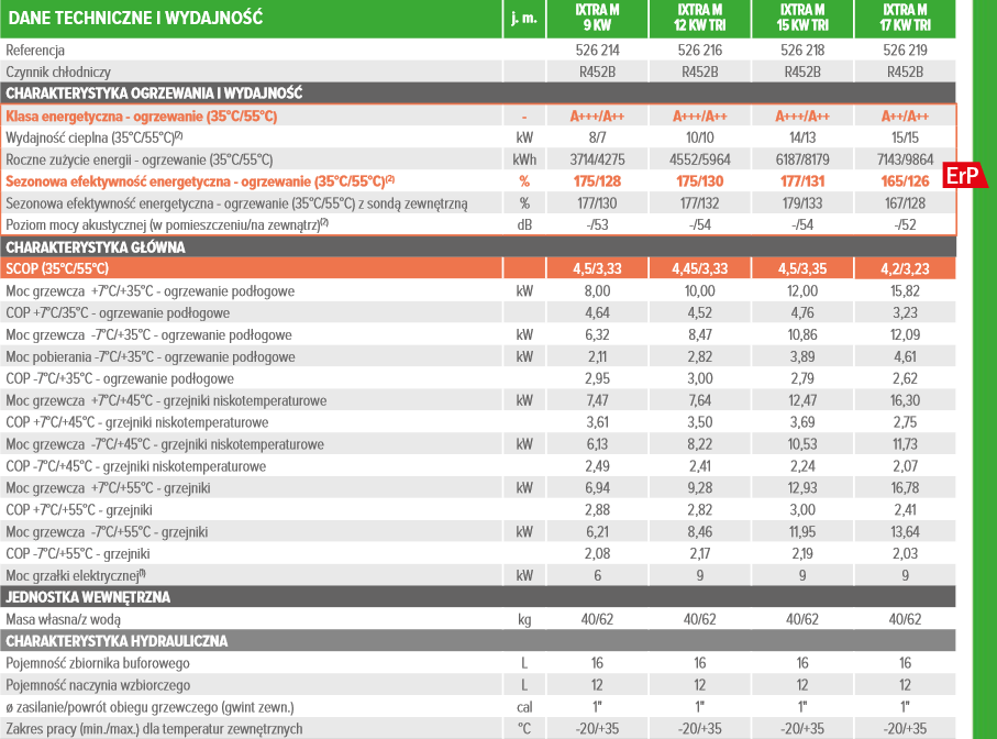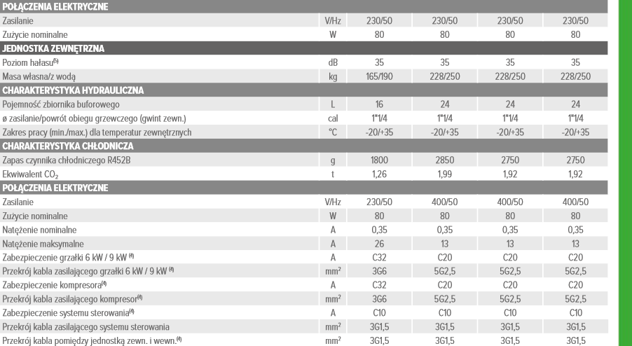 • 4 modele: 9 do 17 kW (z czynnikiem chłodniczym R452B)