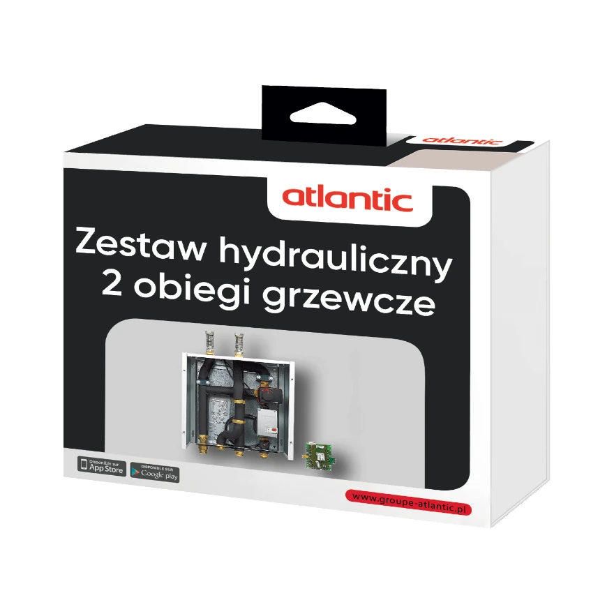 ATLANTIC ZESTAW HYDRAULICZNY 500097 to kompletny system do zarządzania dwoma obiegami grzewczymi, przeznaczony do współpracy z pompami ciepła EXCELIA HP, zapewniający optymalną regulację temperatury w budynku.
