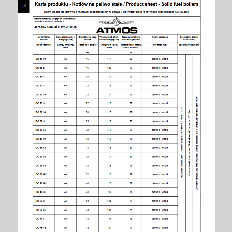 - Ekologiczne spalanie – kocioł według ČSN EN 303-5 klasy 3, 4, 5, EKODESIGN 2015/1189