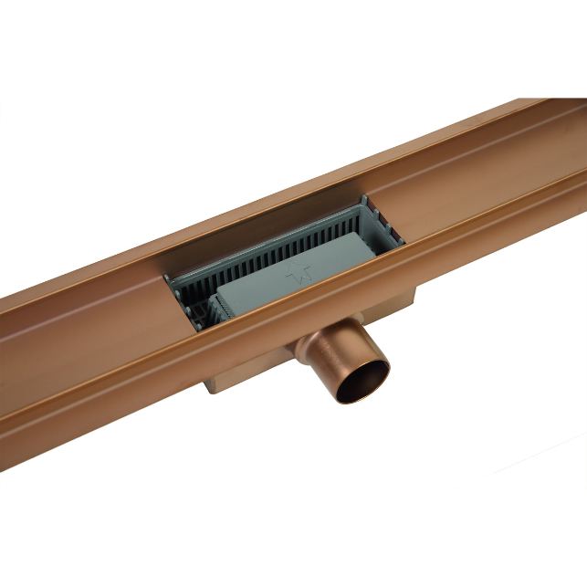 BALNEO DUPLEX NEXT COPPER ODPŁYW LINIOWY 70CM, DWUSTRONNY ZE STALI NIERDZEWNEJ SZCZOTKOWANEJ Z NISKIM SYFONEM I GŁĘBOKIM OSADNIKIEM