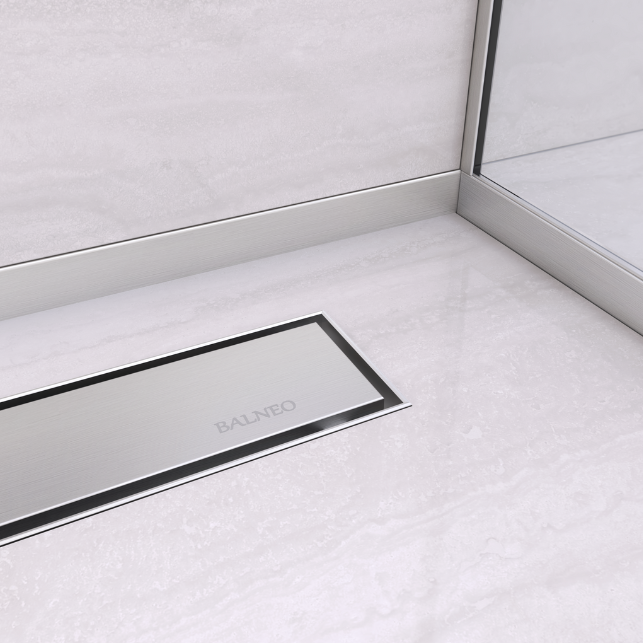 W naszej ofercie znajduje się listwa lewa, prawa i czołowa, czyli inaczej środkowa. Listwa powinna posiadać spad nie większy niż 2-3%. Produkt BALNEO® posiada spad 1,5% co zapewnia odpowiednie odprowadzanie wody przy kąpieli.