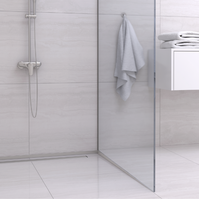 - Listwa spadkowa do odpływu liniowego jest estetycznym wykończeniem prysznica typu walk-in i nadaje elegancji całemu wnętrzu.