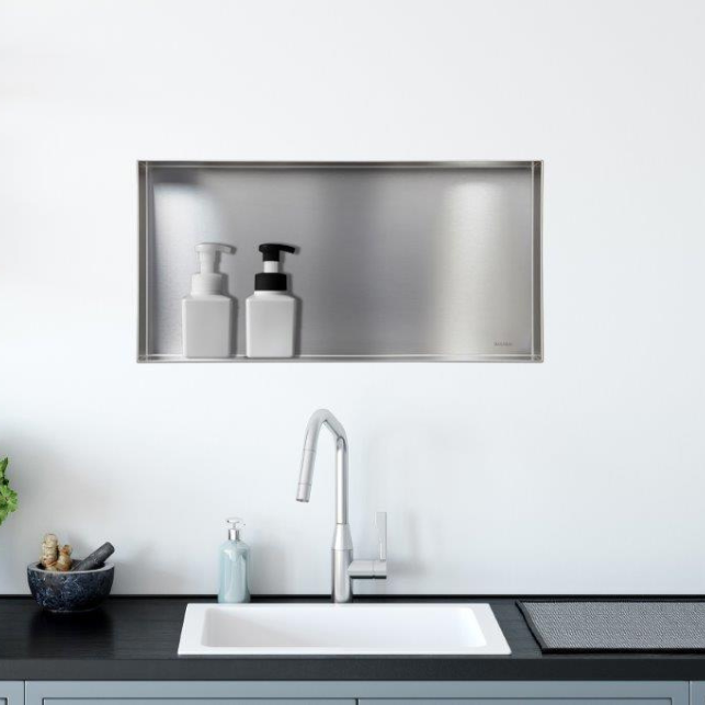 BALNEO WALL BOX NO RIM INOX PÓŁKA WNĘKOWA BEZ KOŁNIERZA 30x30x7cm ZE STALI NIERDZEWNEJ SZCZOTKOWANEJ