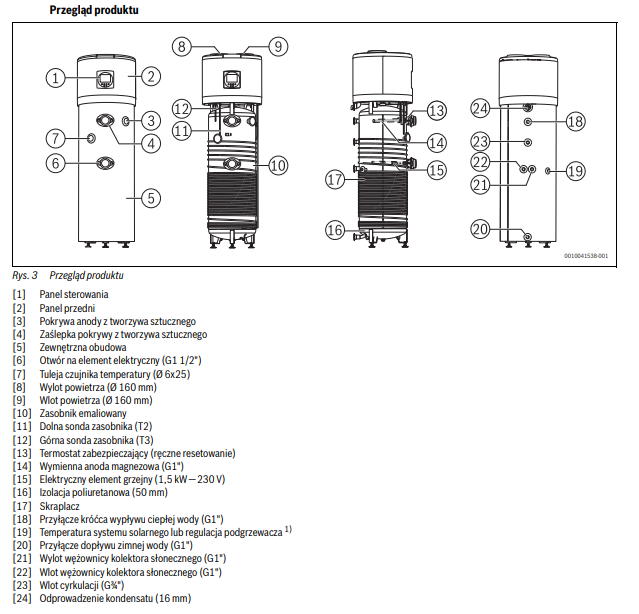 BOSCH COMPRESS CS5001DW 260 POMPA CIEPŁA DO PRZYGOTOWANIA C.W.U 260 L 7738340429 (grzałka zapasowa 1,5 kW)