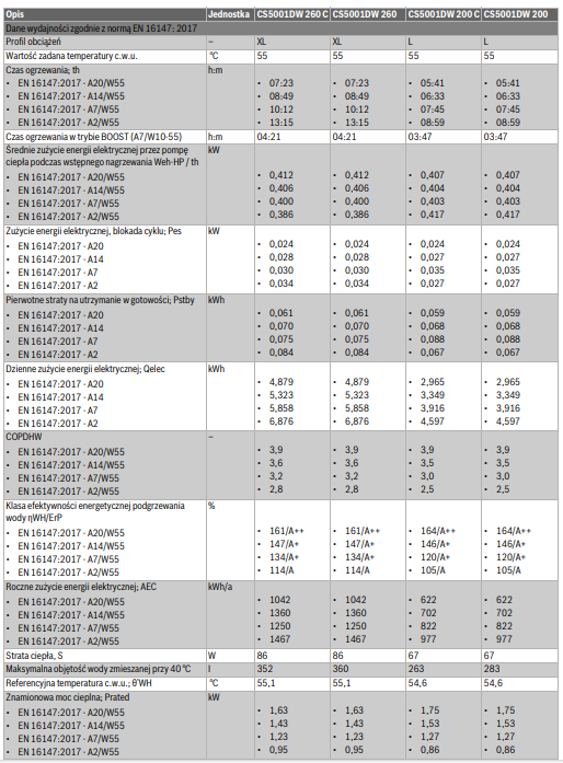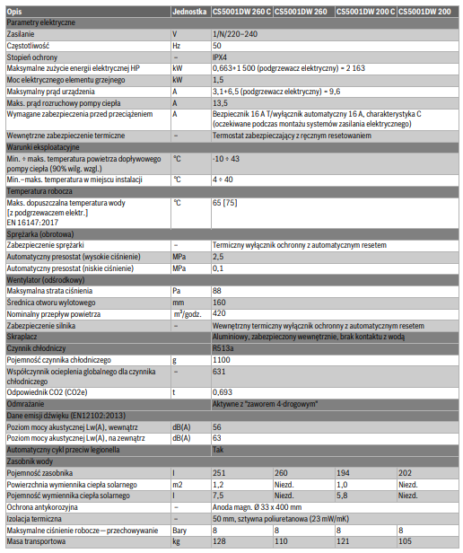 - Wbudowana wężownica (modele CS5001DW … C) o dużej powierzchni do wykorzystania z kotłem/instalacją solarną;
