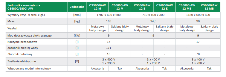 - 2) CS6800/5800i AW M – wersja stojąca z zasobnikiem c.w.u i mikro-buforem i grzałką