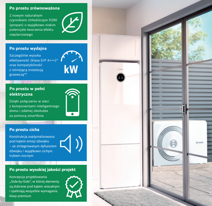 Zarówno w przypadku konieczności wymiany konwencjonalnego urządzenia grzewczego w modernizowanym budynku jak również w przypadku ogrzewania dla nowego budynku, pompy ciepła Bosch są najkorzystniejszym rozwiązaniem – niezależnie od tego, czy chodzi o domy jednorodzinne czy wielorodzinne budynki mieszkalne.