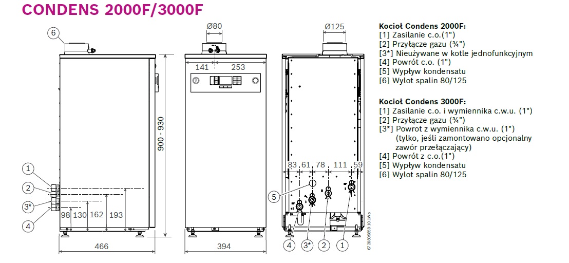 BOSCH CONDENS 3000F 30 NA GAZ ZIEMNY E (GZ 50) ORAZ GAZ PŁYNNY (P) MOC KW 7,0-30,1