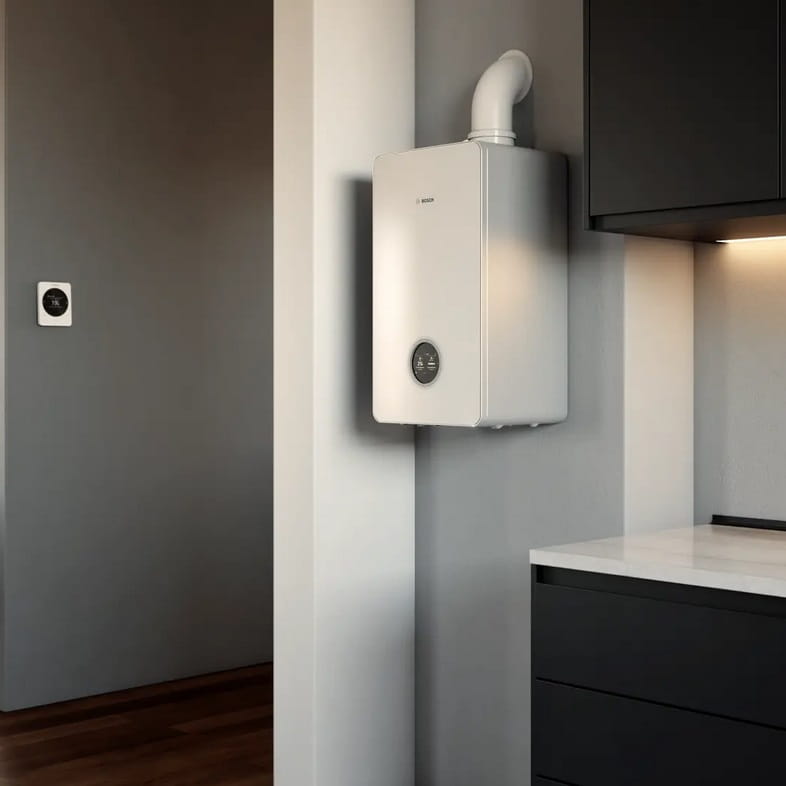 ¹ Ten kocioł marki Bosch jest gotowy na zasilanie gazem ziemnym z 20% domieszką wodoru (H₂). Oznacza to brak konieczności wymiany urządzenia w przypadku zmiany paliwa w sieciach gazowych z gazu ziemnego na mieszankę z wodorem.