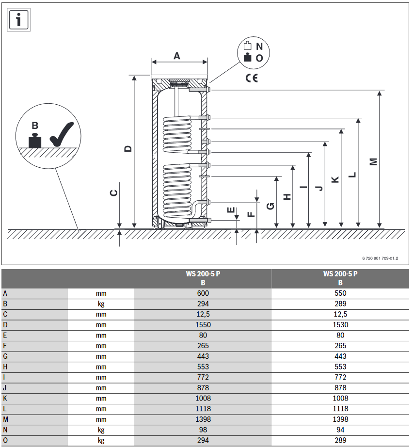 BOSCH STORA WS 200-5P1C SREBRNY ZASOBNIK C.W.U STOJĄCY EMALIOWANY 2W 195L -7735500785