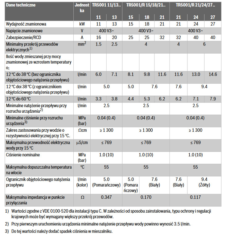BOSCH TRONIC 5000 - TR5001 15/18/21 EB ELEKTRYCZNY TRÓJFAZOWY PRZEPŁYWOWY PODGRZEWACZ WODY 7736506137