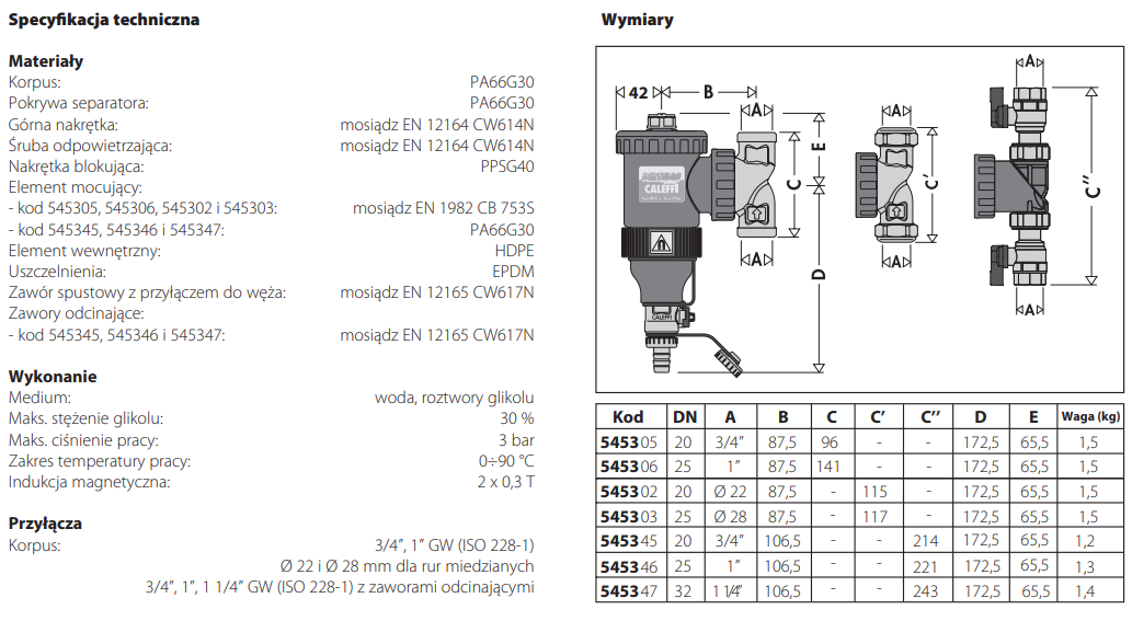 CALEFFI DIRTMAG 1" MAGNETYCZNY SEPARATOR ZANIECZYSZCZEŃ Z ZAWORAMI KULOWYMI (PRZYŁĄCZE RUCHOME GWINTOWANE) 545346